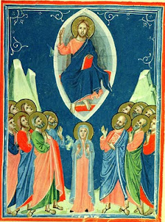 Prefacio de la Ascensión.- Realmente es justo y necesario, es nuestro deber y salvación darte gracias, siempre y en todo lugar, Señor, Padre Santo, Dios todopoderoso y eterno, por Cristo nuestro Señor: Que después de su resurrección se apareció visiblemente a todos sus discípulos y, ante sus ojos, fue elevado al cielo para hacernos compartir su divinidad. Por eso con los Ángeles y Arcángeles y con todos los coros celestiales, cantamos sin cesar el himno de tu gloria: